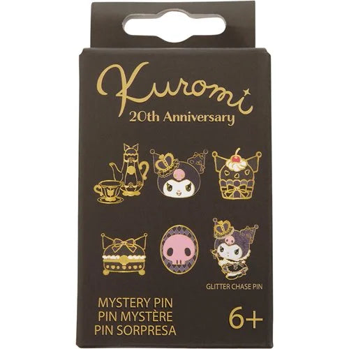 Is there a better way to celebrate Kuromi's 20th anniversary than with a set of mystery pins!? There are six possible options to collect. Each comes in mystery packaging so you don't know which you'll get! Try to collect them all: a Kuromi-themed cupcake, Kuromi wearing a crown, a tea set, a pink skull, a Kuromi-themed jewelry box, and the glitter chase is Kuromi with a crown and scepter! Collect them all and display them on a pin board or add them to a jacket or bag to show off one of your favorite Sanrio characters! Each enamel pin measures approximately 1 1/2-inches tall.